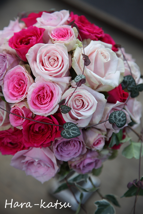 濃淡のピンクのバラを使って作成しました。