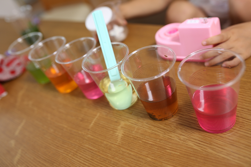 いろいろな色の水を作りました♪