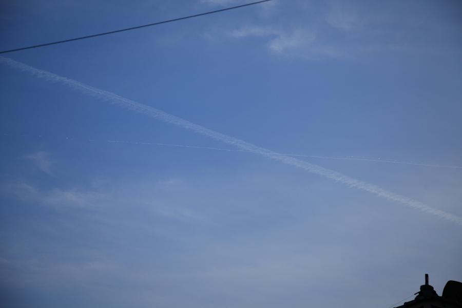 ”飛行機が空にお絵かきしているよ~”