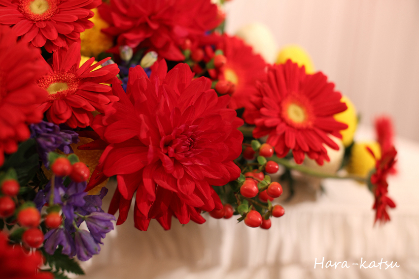上が”ガーベラ”、下の画像は”ダリア”をメインに撮ってみました。