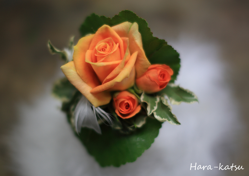 バラ”オレンジデュカット”のブートニアです。