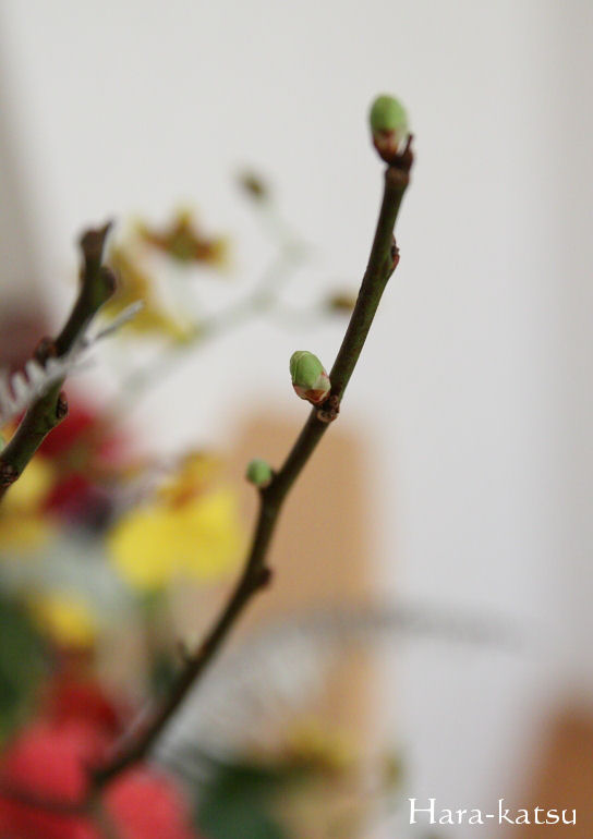 アレンジメントに使っている梅の芽もふくらみはじめたので、