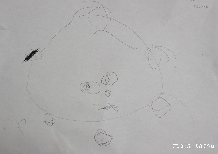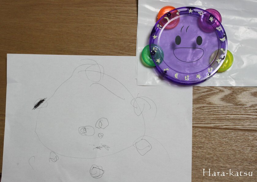 それを見ながら娘(2歳半)が描いた、タンバリンです!!