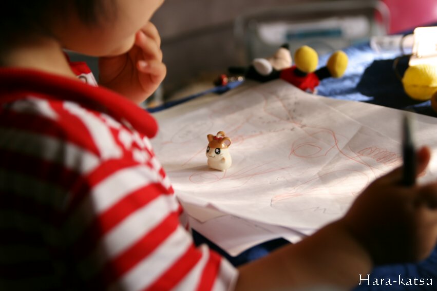 お絵描き好きな娘を見守る、小さな守り神です?!
